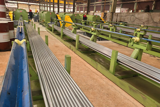 公司年產(chǎn)萬噸“不銹鋼無縫換熱管”;目前擁有φ20高精度高速軋機(jī)6臺,φ60高速軋機(jī)5臺;冷拔機(jī) 8臺(4臺一拉三冷拔機(jī));全套渦流超聲一體探傷設(shè)備;水壓機(jī)等。
